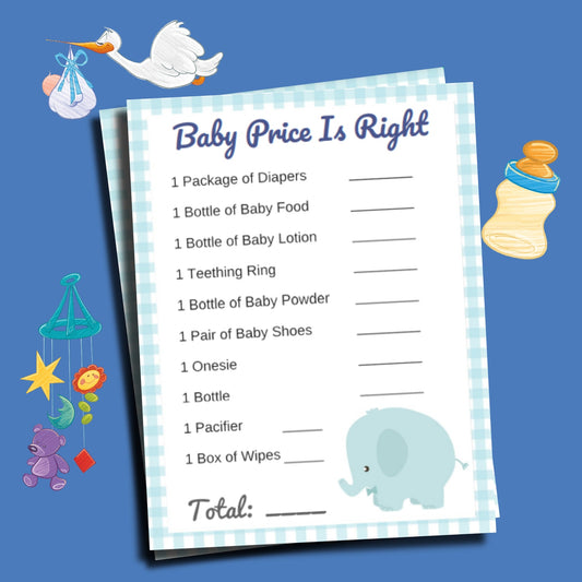 Blue Elephant The Price Is Right Baby Shower Game Printables