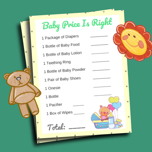 Teddy Bear The Price Is Right Baby Shower Game Printables