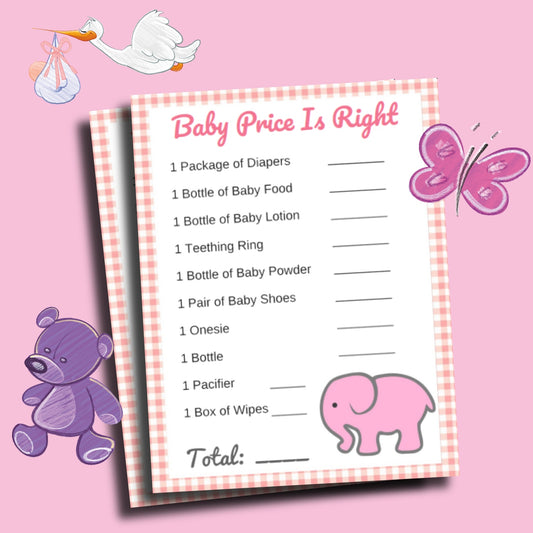 Pink Elephant The Price Is Right Baby Shower Game Printables