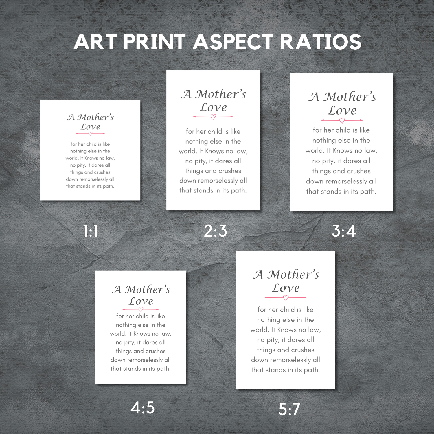 You will receive digital files in both JPG and PNG format in 5 print ratios for unlimited size options to choose from including...
