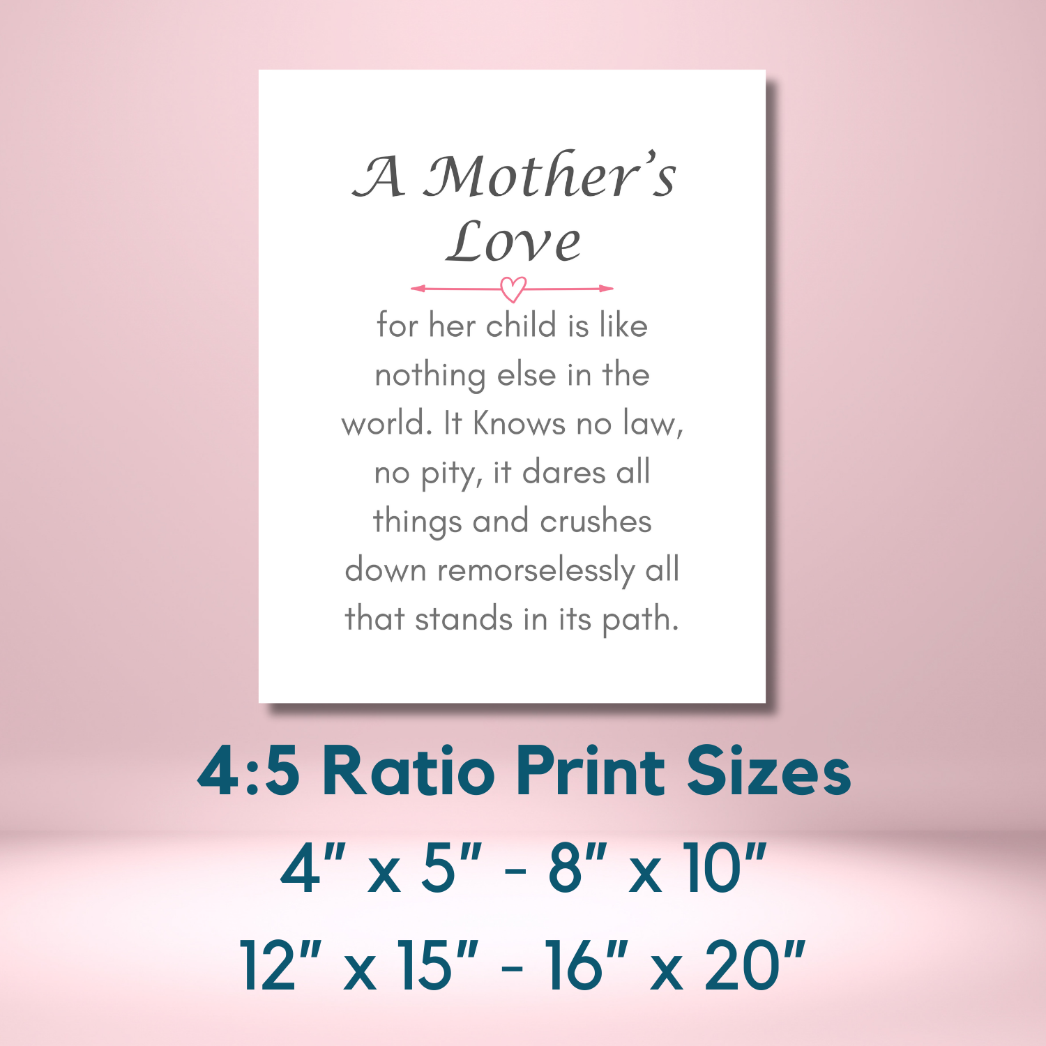 Celebrate the love that knows no bounds with our enchanting "A Mother's Love" poem wall art print.