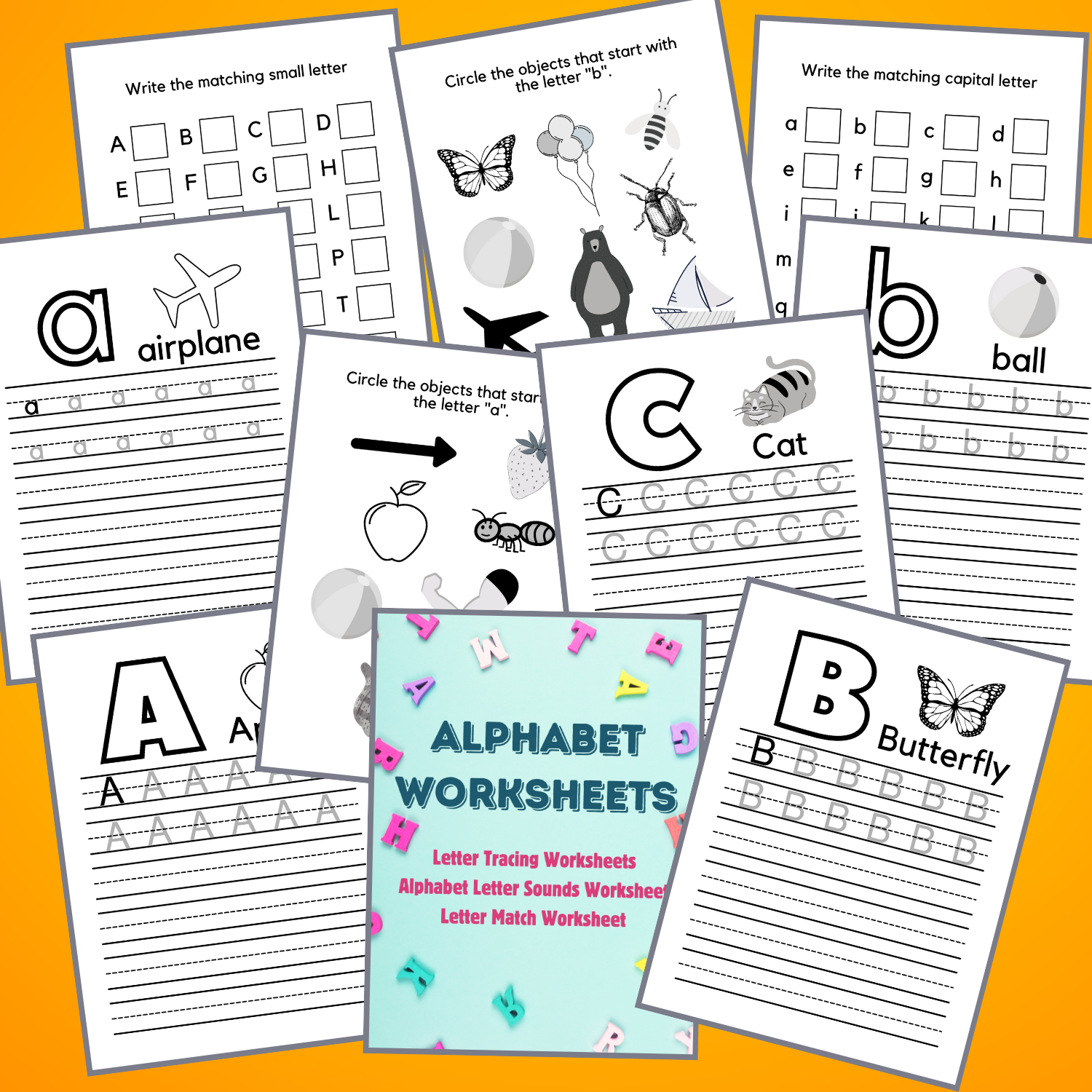 These worksheets provide a fun and engaging way for kids to explore letters, from tracing both uppercase and lowercase forms to matching letters and identifying initial sounds.