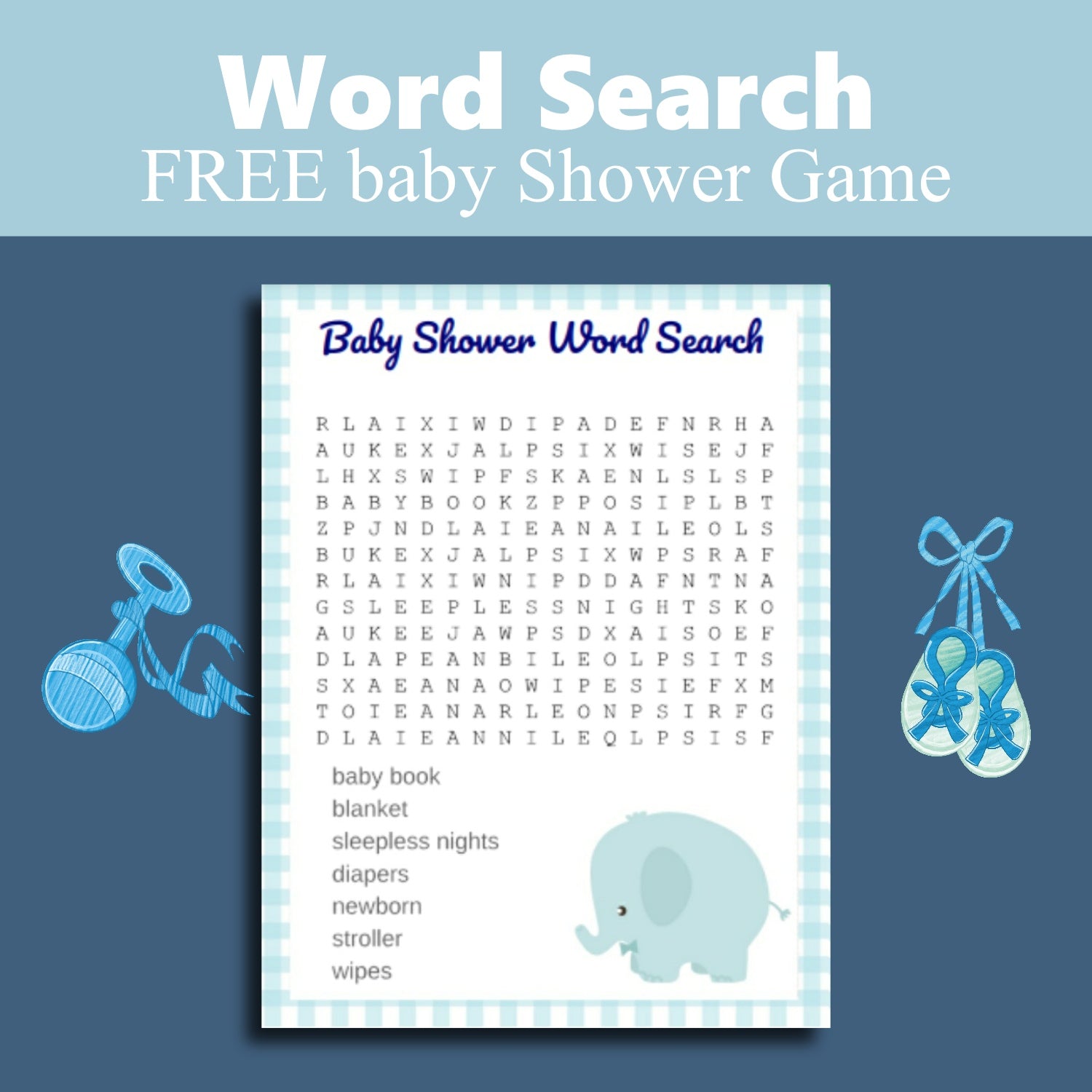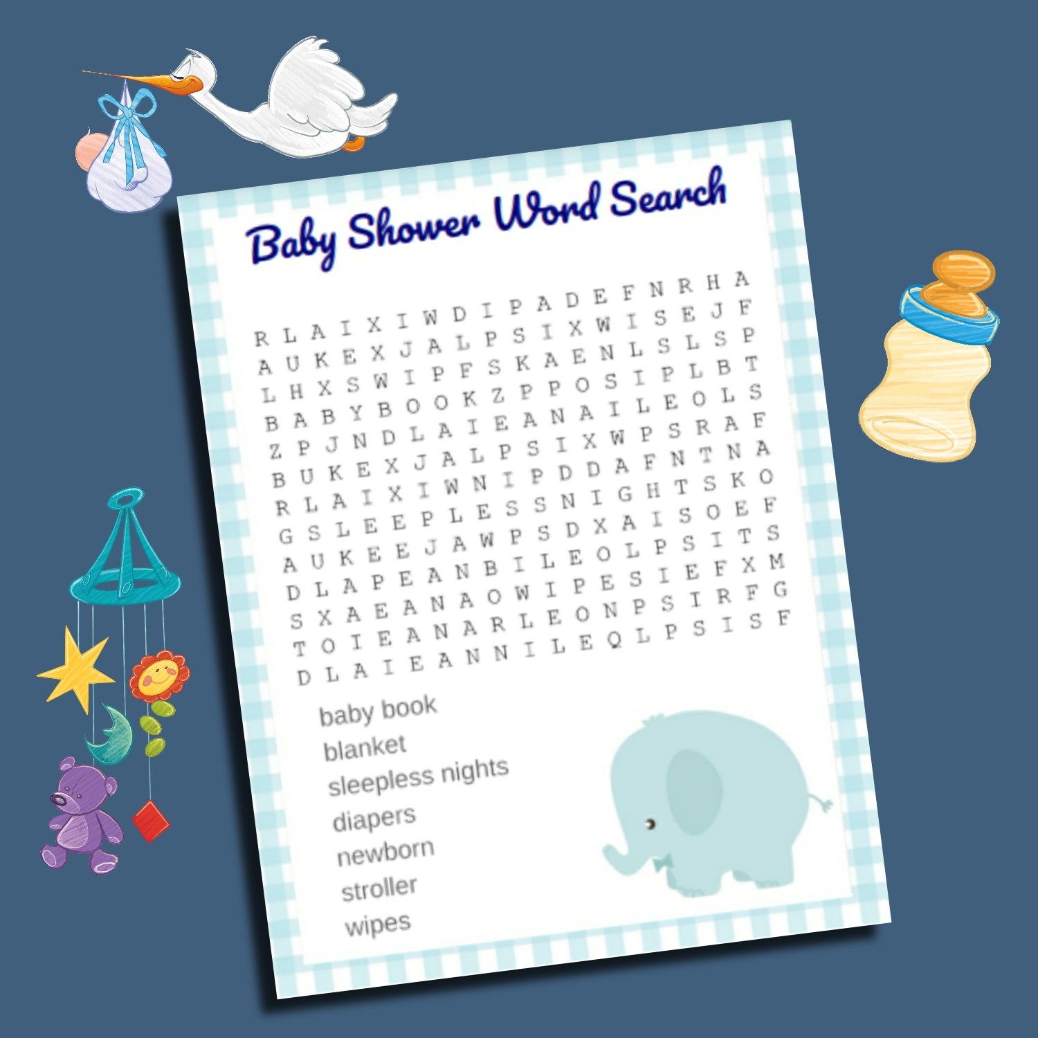 Keep your Baby Shower guests entertained with this free printable blue elephant Word Search game