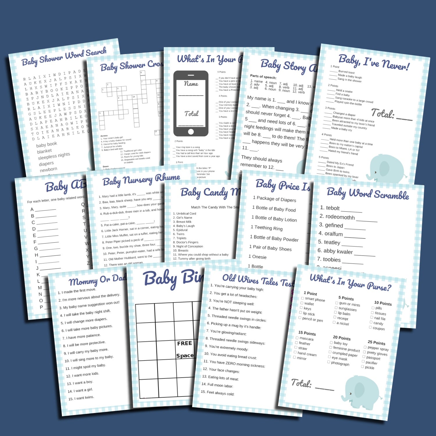 The Printable Baby Shower bundle is a set of 14 fun baby shower games including...