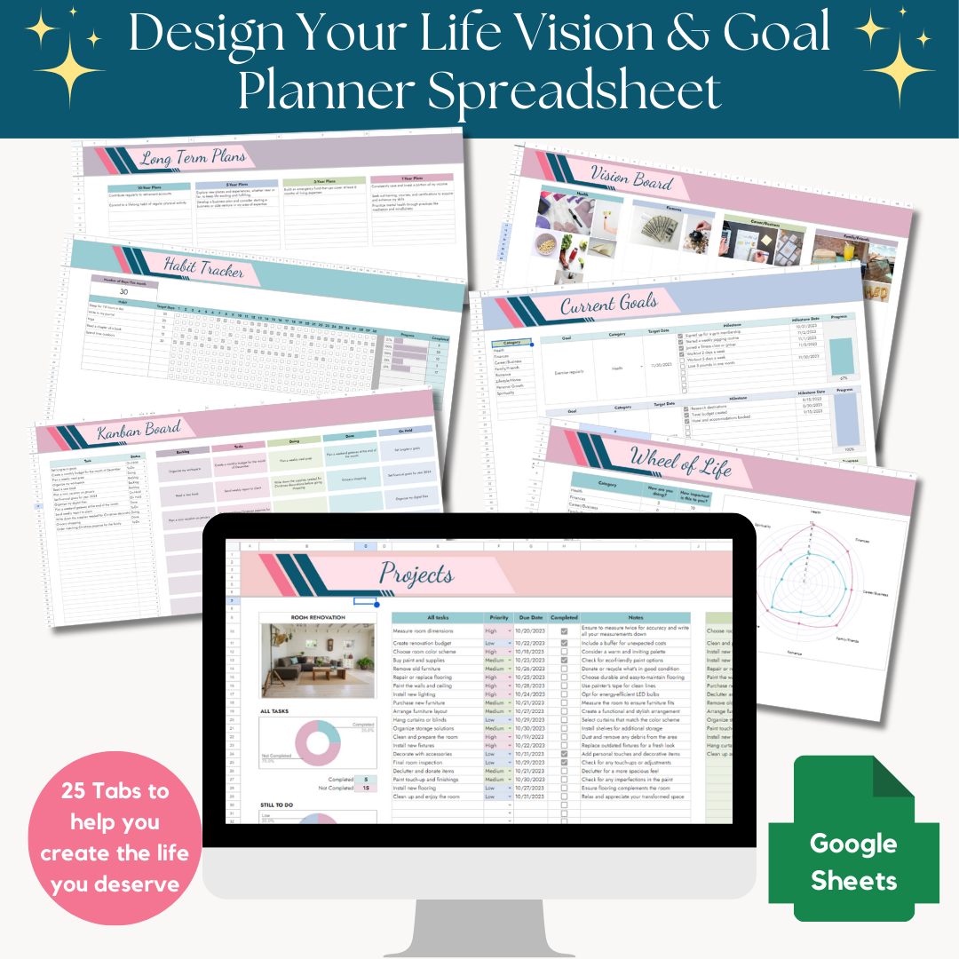 Unleash the power of planning and create your dream life with the Design Your Life Vision & Goal Planner Spreadsheet