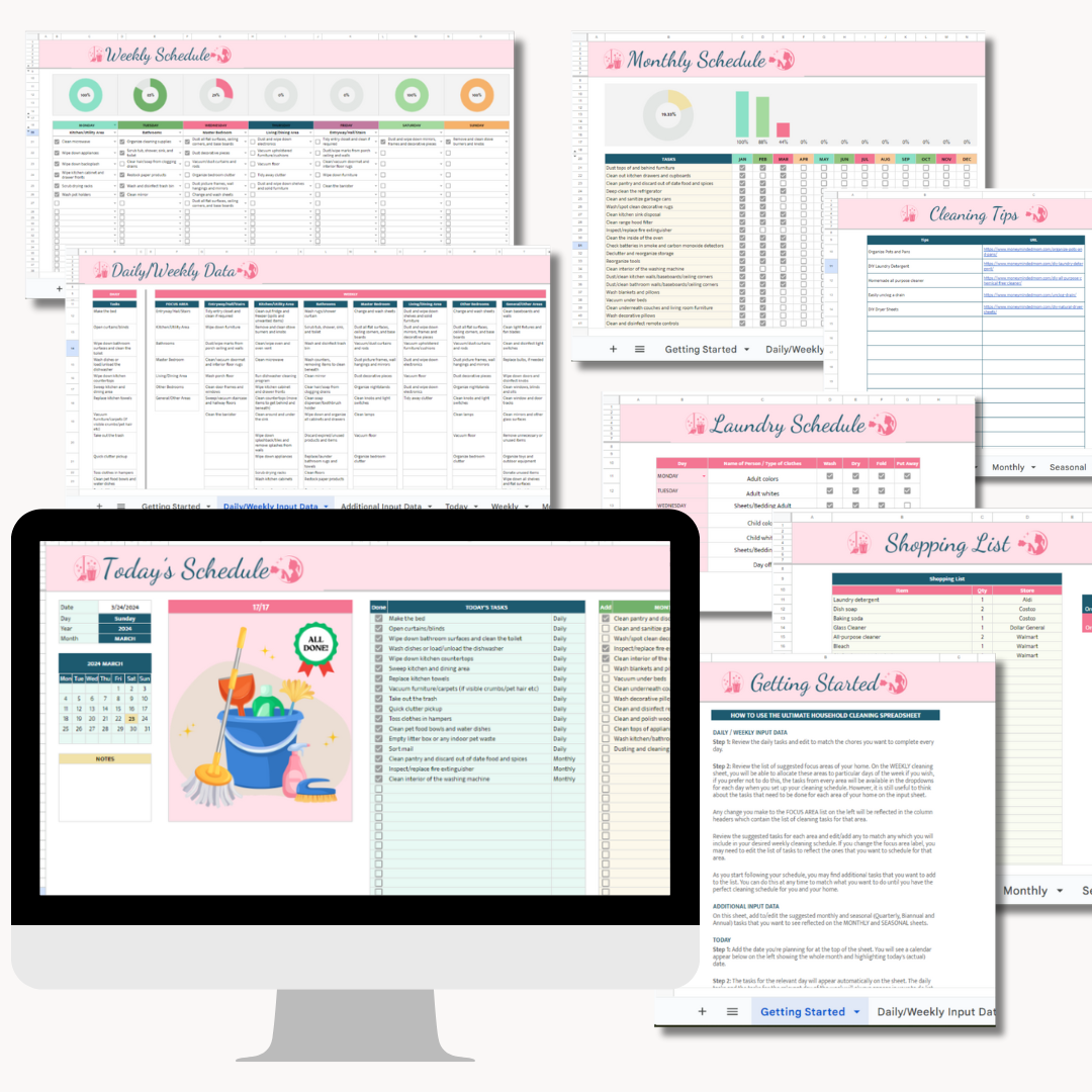 The Ultimate Household Cleaning spreadsheet is set to revolutionize your cleaning routine. Run your home like a well-oiled machine, with daily, weekly, and monthly tasks outlined for seamless operation.