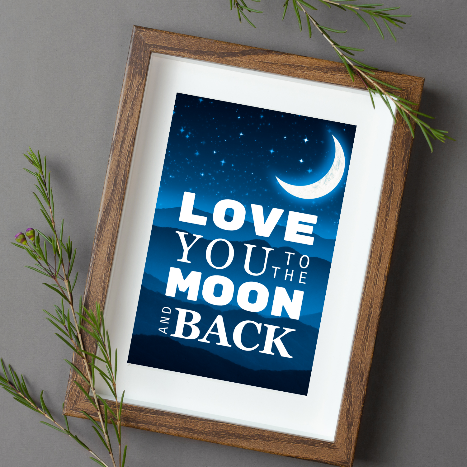 Our Love You to the Moon and Back Wall Art Digital Print is the perfect gift idea for your loved one.