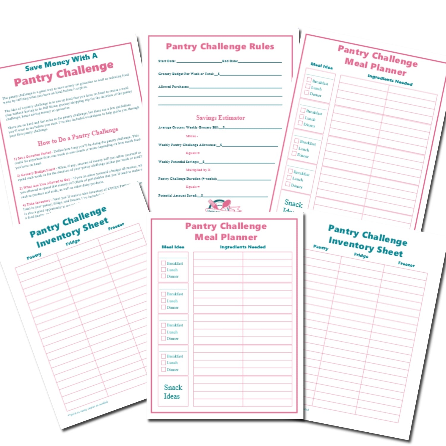Pantry Challenge Worksheets include...