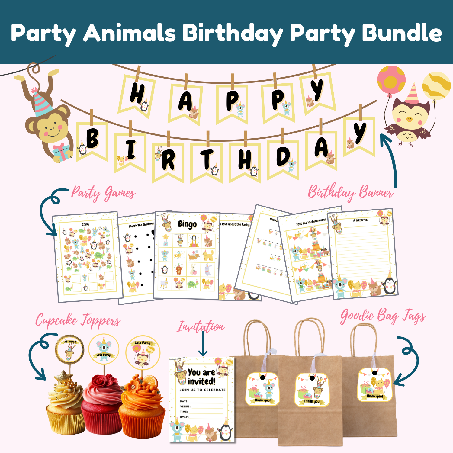 Get ready to unleash the party animals and make your child's big day truly wild and wonderful. Grab the Party Animals Birthday Party Bundle today and let the festivities begin!