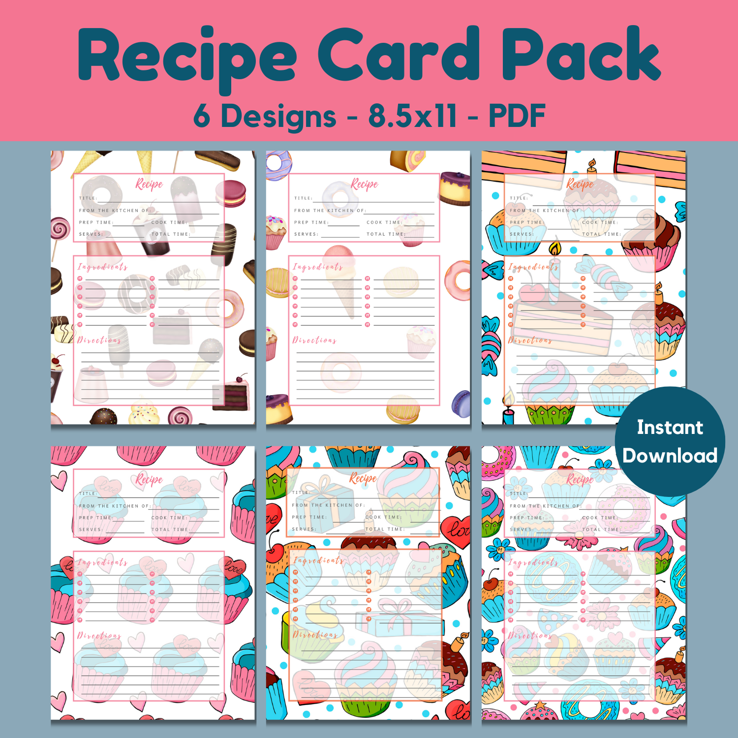 Recipe Card Printables (6 beautiful sweets & treats designs)