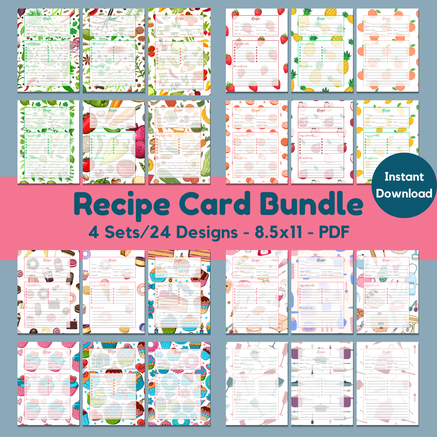 Recipe Card Printables Bundle (6 sets / 24 beautiful designs)
