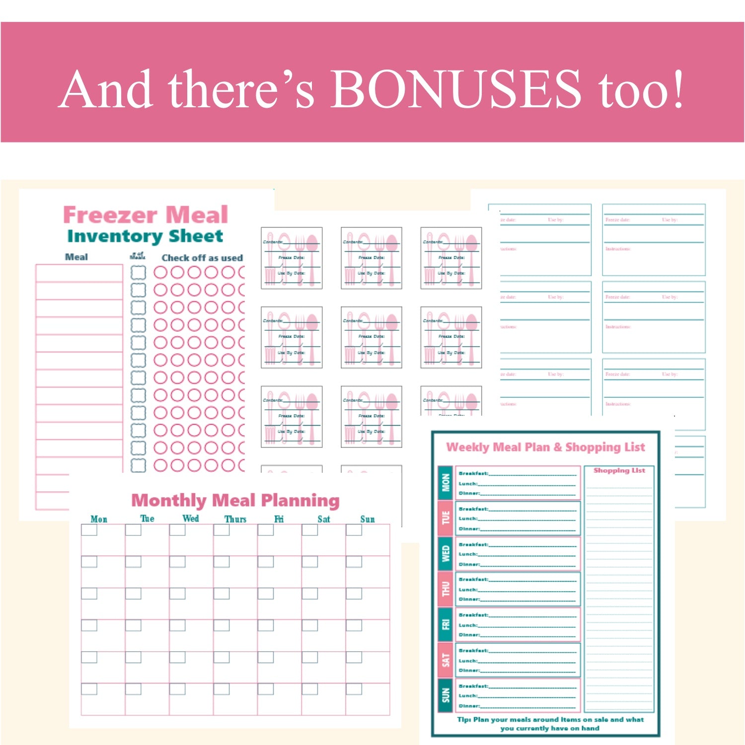- Freezer meal inventory tracking sheet so you always know what you have on hand and what you need to replenish