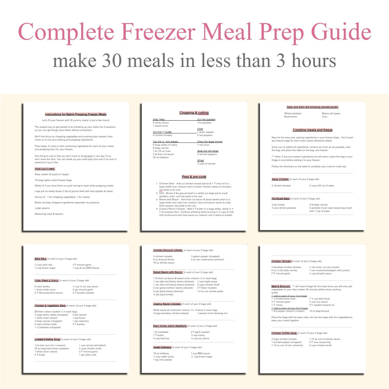 - Batch meal prep instructions that guide you through prepping 30 meals and getting them into your freezer in less than 3 hours using my easy to follow stepped system